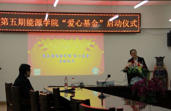 对学生的关爱和对学生成长成才的殷切期望。在苑颖老师公布了15级本科生受资助的学生名单后,能源“爱心基金”的发起人秦江老师介绍了成立爱心基金的目的,表示他希望这些助学金能够更好地激励受助学生的学习,也希望能够增强自身和受助学生的交流,更好地了解到他们的学习生活,起到真正的帮扶的作用。