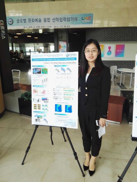 学习成绩上有了一定的提高后,对科技创新充满好奇和向往的她开始组队参加创新创业项目、节能减排大赛开启了自己的科创之旅,进入实验室和老师、师兄多多沟通、阅读查找大量中外文献,从最初好奇性的接触、到期间探索性的学习,再到最后加工成品参加比赛。这期间方案讨论、模型搭建、数据分析、论文修改,每一个过程听起来是那么的简单,水到渠成般轻松。但科研的路走过的人都知道,不是那么的容易与简单,在风雨中砥砺前行成为那时候她的口头禅。有时一个数据和模拟结果的偏差都会让她们反复进行实验和模拟很多次,因为科研的时间太晚,被宿舍管理员教育都是再平常不过的事了。也正是备战期间她和队友们夜以继日的奋斗和较真不服输的精神让她们顺通过初赛和网评,最后在决赛中获得一等奖,并于2016年8月受邀赴台湾参加东元国际科技大赛进行交流,10月随皇冠足球赔率 赴韩国汉阳大学参加学术交流和海报展示。一次次的比赛与交流让她开拓了视野,锻炼了口语表达能力,同时也更加明确了今后前进的方向。