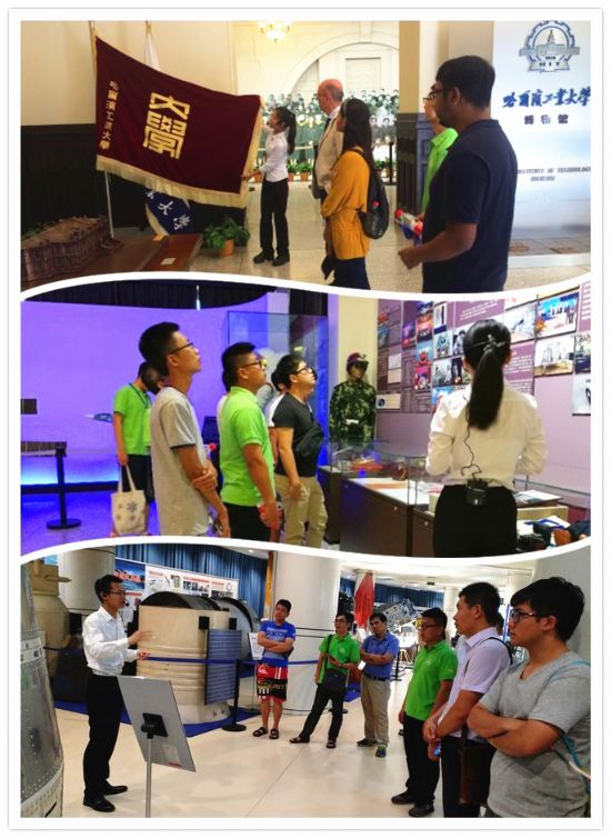 为了使特邀教授及学员们更加全面地了解我校的文化历史以及我校在航天领域中的突出贡献情况,7月21日下午14:00,在李威老师和志愿者的带领下参观了我校校史馆和航天馆。在参观校史馆的过程中分别有中文讲解和英文讲解,讲解人员详细介绍了我校从建校以来的重大事件及变迁过程,我校在科研成果和关键技术方面取得的突破性的全球领先技术。从历代校长不变的严谨务实的精神、国家领导人邓小平对工大发展方向的指导、哈工大师生当年参加抗日活动的史料、从哈尔滨中俄工业学校一步步发展到今天哈工大的历史进程表、荟萃着两院院士和共和国将军的巨幅展板,我校一校三区的校区分布以及先进的教学理念和世界一流大学目标。展板上详细的资料,展台上精确的比例模型,还有展柜中保存完好的见证工大历史的物品,一段段文字,一幅幅照片,一件件实物,都给同学们留下了深刻的印象。