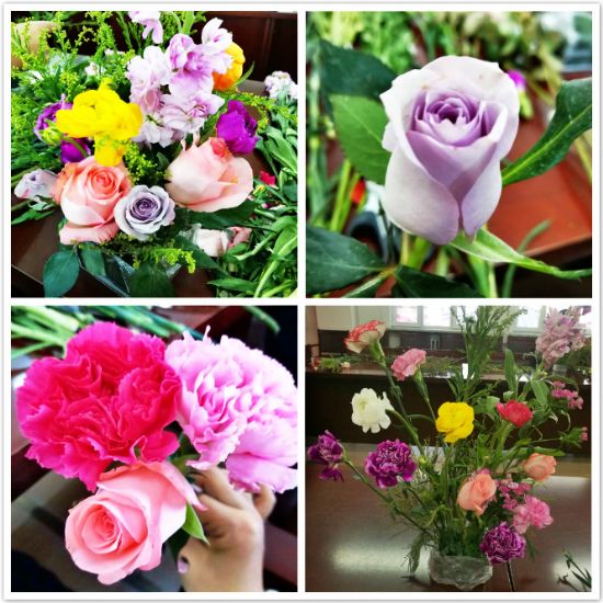 的王启燕老师,首先王老师从插花的历史,东西方插花类型的区别,以及鲜花的种类和花语等方面做了详细的介绍,随后,又仔细地为女教职工们示范插花步骤,并耐心的一一上前指导,帮助大家完成了插花作品。在王老师的指导下大家分别完成普通插花和艺术插花两种不同风格的插花造型。