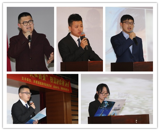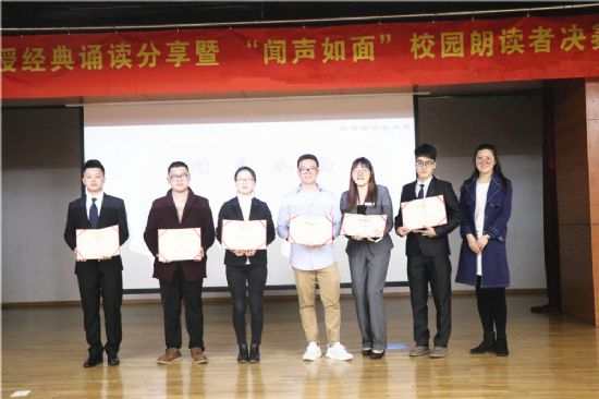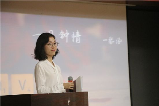 活动伊始,于达仁教授向同学们分享了自己的诗歌创作作品、创作经验,以及很多作品背后的故事,深情讲述了自己对诗歌的热爱,呼吁同学们在青年时代走进诗歌、了解诗歌,鼓励同学们热爱诗歌、创作诗歌,无论是传统诗歌还是现代诗歌,都是情感表达的一种美妙途径,在场的同学们深受鼓舞并和教授进行了台下的交流互动。紧接着,校园朗读者大赛决赛的第一部分开始了,选手们依次上台向大家展示自己的朗诵作品,有的声情并茂,有的铿锵有力,有的婉转悦耳。伴随着或激昂或轻柔的音乐,现场的观众如痴如醉,待朗诵完毕后,场下爆发出了雷鸣般的掌声。第一轮比赛结束后,由六位评委依次为选手打分,平均分靠前的6位选手晋级第二轮比赛。