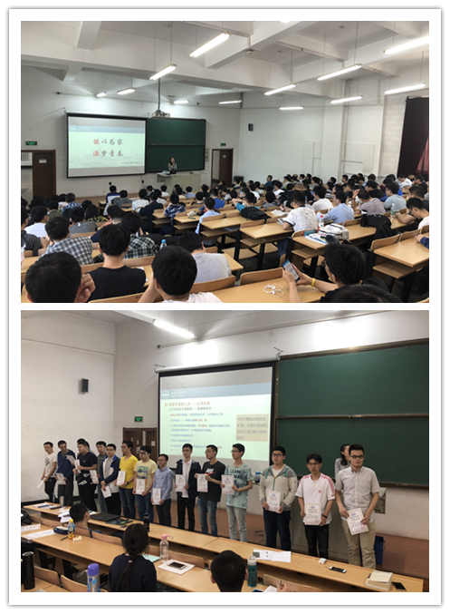 然后李威老师向同学们讲述了“源梦青春”的四个努力方向分别为认清自己、认清环境、认清机会、认清未来。首先进入大三后,同学们要对自己的专业有更深入的理解和掌握,明白专业的培养目标和定位,从而努力提高自己的专业建树和个人能力,须知打铁还需自身硬。其次要认清环境,时刻关注自己的各科学分是否修足,并努力备战期末和重修考试,还要重点关注自己的人身安全和身边的各种诱惑与危险。然后要认清机会,明确自己的大四方向,在读研、出国、就业中做好慎重规划、选择和准备,通过大量详实的数据和清晰的统计图,让大家对各个方向都有了更深入了解,台下学生们被深深吸引,同时也对自己未来可能的选择方向有了清晰的理解。最后希望同学们能够认清未来,努力对照学校的人才培养目标和自身的人生发展目标,树立哈工大自信,展现哈工大精神,努力争做向上有为的新青年。