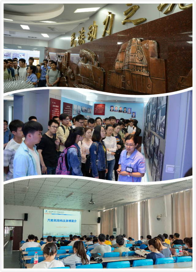 本次校企交流活动社会实践内容主要包括参观哈尔滨汽轮机厂,汽轮机原理讲座以及篮球友谊赛。首先,哈汽负责人带领所有17级硕士参观了哈尔滨汽轮机厂展厅,讲解了老一辈哈汽人的奋斗历程、哈汽在新中国历程中的贡献以及哈汽在建厂以来的突出成就,然后参观了叶片分厂以及重装分厂,参观过程中实际学习汽轮机叶片制造、装配等工艺流程,在随后的汽轮机讲座中,向同学门详细介绍了关于汽轮机以及锅炉等相关知识,激发了大家学习的兴趣,讲座结束了,同学们和哈汽专家进行了丰富的互动。