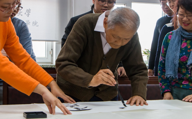 活动临近结束前,徐老师与大家分享了自己的感受。徐老师首先感谢皇冠足球赔率 学生会与皇冠足球赔率 工会举办这次活动并邀请自己参加。他表示中国的书法作为一种艺术是世界上独有的。随着科技的进步,人们习惯于在键盘上打字,而不再是像古代,通过毛笔字交流通信。我们要不断继承发扬这种艺术并且感到自豪。他同时还讲述了自己是在退休后研习书法书法的经历,通过书法让他了解中国古代名人的诗词与中国文化,体会到中华文化的乐趣。徐老师还着重强调了书法与学习工作的共通性,他讲到要做好一个工作,需要的是我们的热情,我们愿意花时间投入并且把它作为自己的爱好,才能取得今天的成就。最后,徐老师希望大家培养书法这一爱好,在课余时间练习书法,继承中国传统文化。