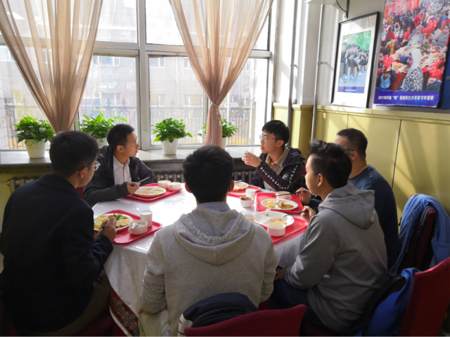 4月17日清晨,皇冠足球赔率 第三十三期师生早餐会在学苑餐厅一楼顺利举行。皇冠足球赔率 发动机气体动力研究中心的温风波老师与自愿报名参加早餐会的五名同学共进早餐,同学们与老师之间交流热烈。
