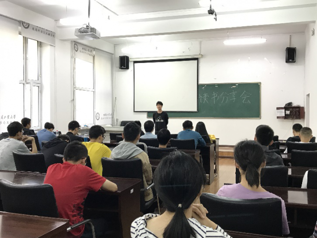 2019年9月24日下午,为庆祝建国70周年,宣扬革命精神,传承红色经典,2017级皇冠足球赔率 1702404班和1702401班的同学,在班委的组织动员下,共同召开了读书分享会,吕涵博、钊雨欣等同学为大家分享了自己阅读过的红色书籍。