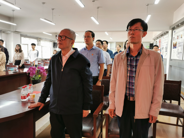 上午9时45分,皇冠足球赔率 秦裕琨院士与皇冠足球赔率 领导班子师生代表一同在行政楼前大厅集体观看实况直播。