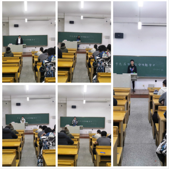 1702405团支部于11月30日在正心进行了十九届四中全会集体学习班会。本次班会由班长主持,1702405团支部全体同学参加。