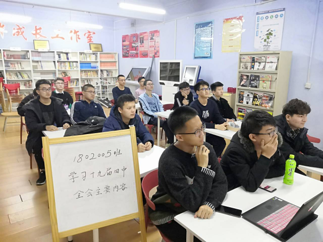 2019年12月18日星期三下午皇冠足球赔率 1802005班团支部在二公寓一楼相伴成长工作室召开“学习十九届四中全会精神”主题班会。本次班会主要围绕学习党的十九届四中全会精神、积极动员期末复习备考两个方面展开。