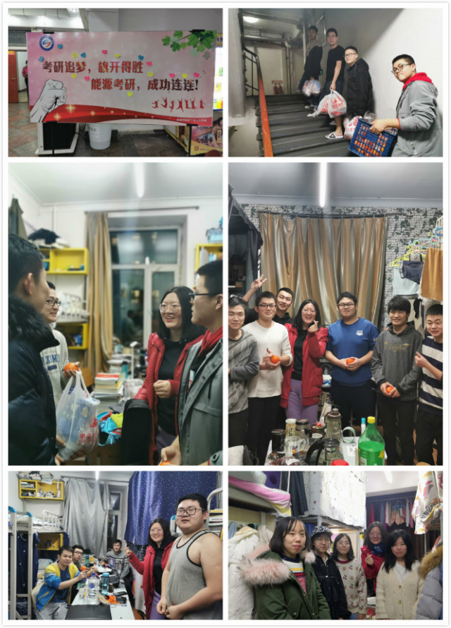12月20日晚,大四辅导员王博文老师、大二辅导员邓冰冰老师、皇冠足球赔率 学生会志愿服务部全体同学走访大四寝室,为在寝室紧张备考的同学们送上了精心准备的礼物以及美好的祝福。在送温暖的同时,辅导员也询问了考研学生现在的复习情况,勉励同学们把握好最后冲刺阶段,既要坚定信心,也要劳逸结合,保持稳定的心态,为自己的考研之路画上圆满的句号。同学们表示,纵使备考最后阶段很辛苦,他们也一定会带着皇冠足球赔率 的祝福坚持到底