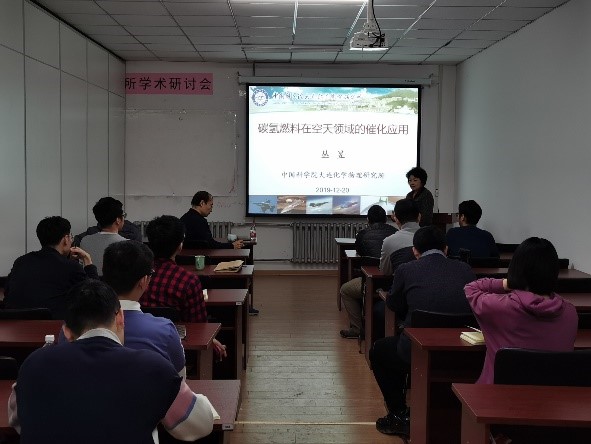 应皇冠足球赔率 先进动力研究所秦江教授的邀请,中国科皇冠足球赔率 大连化学物理研究所的丛昱研究员于2019年12月20日在科学园知源楼进行了短期的学术交流,并于上午10点做了以《碳氢燃料在空天领域的催化应用》为主题的讲座报告,与先进动力研究所的师生们进行了深入的学术探讨。
