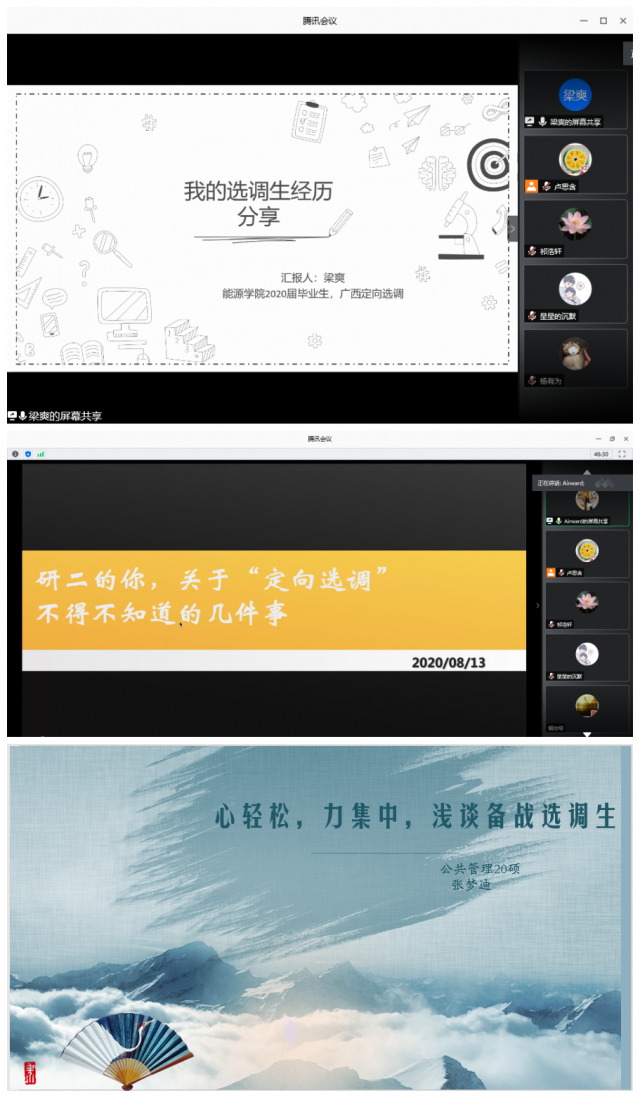 为响应“到祖国最需要的地方去建功立业,不负哈工大人使命担当,不负青春不负党”的号召,皇冠足球赔率 2019级硕士研究生于8月13日晚6时30分进行了线上选调、公考经验分享会。本次分享会邀请了2020届选调成功的三位学姐,分别是皇冠足球赔率 硕士毕业生梁爽、经管皇冠足球赔率 硕士毕业生李帅和张梦迪。