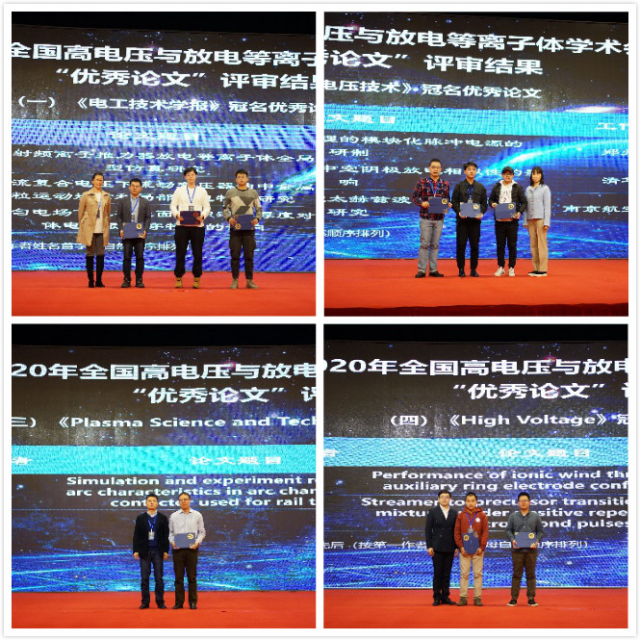 此次会议于25日晚圆满闭幕,承办单位共同主席聂秋月、唐井峰等致闭幕辞,闭幕式上还颁发了中国电工技术学会等离子体及应用专业委员会优秀青年学者、优秀研究生、以及优秀会议论文、优秀口头报告和优秀会议海报等奖励,闭幕式由会议副主席、哈尔滨理工大学迟庆国教授主持。在会议接收的近100篇全文论文中,会议提前组织专家评审,共评选出了优秀论文9篇,分别由《电工技术学报》、《高电压技术》、Plasma Science and Technology、High Voltage4个期刊冠名。为表彰参会者精彩的口头报告和海报展示,大会还评选了优秀口头报告26篇、优秀海报展示8篇,优秀率分别为10.2%(26/256)和7%(8/115)。南京苏曼等离子科技有限公司及西安灵枫源电子科技有限公司因对大会的突出贡献,被大会授予“金牌赞助商”。此次会议联系了多家国内电工和等离子体领域的知名期刊,如《电工技术学报》、《中国电机工程学报》、《高电压技术》、《高压电器》、《强激光与粒子束》、《气体物理》、《广东电力》、《电网技术》、《电工电能新技术》、Plasma Science and Technology(PST)、High Voltage等国内11家合作期刊,大会接收的全文论文将经严格审稿后推荐至相应期刊发表。