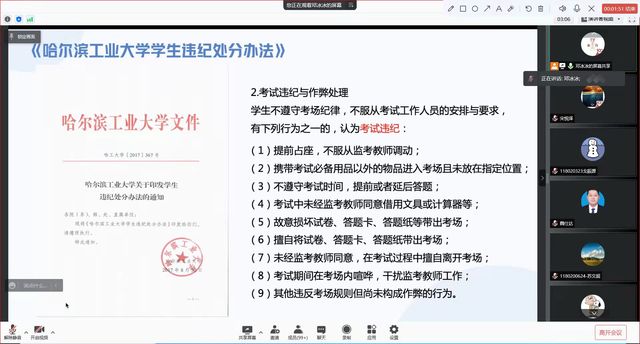 会上,各年级辅导员分别结合《哈尔滨工业大学学生违纪处分办法》和《哈尔滨工业大学学生考试纪律及考试违纪处分管理办法》,详细介绍了考试违纪条例及处理办法,结合相关案例分析,让同学们充分认识到加强考风考纪教育的重要性以及考试违纪的严重性,告诫同学们端正学习态度,自觉遵守考试纪律,切勿抱有侥幸心理。