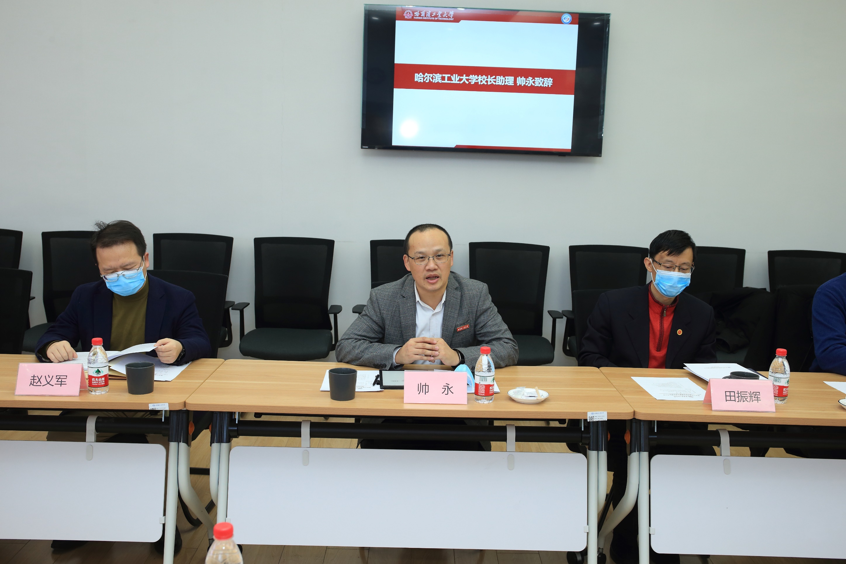 深化校企战略合作洽谈会在节能楼212会议室举行。哈尔滨工业大学校长助理帅永出席会议。