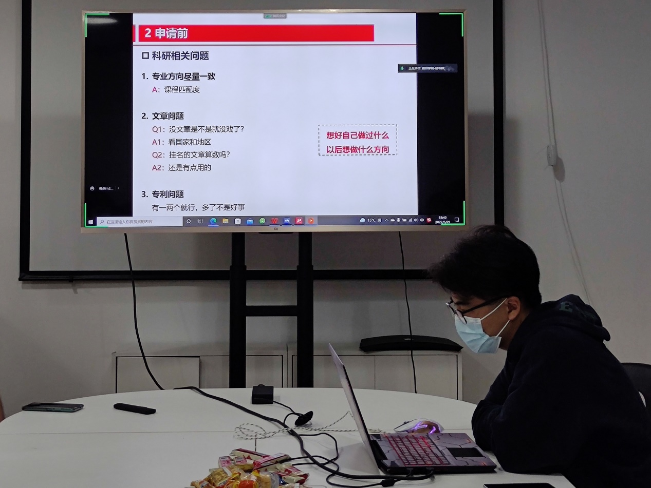 首先,马松松“以为什么选择出国留学”为引,分享了自己在申请前准备、申请学校选择、留学材料投递等方面的心得体会。之后,王得鑫以“为人民服务的精神和情怀”作引,分享了个人心态调整、学习时间规划以及面试面谈经验的心得体会。在随后的提问交流环节,两位师兄详细解答了同学们在留学时间节点、选调报考要求等方面存在的问题,师兄们丰富的经验和良好的建议使在场的同学受益匪浅。