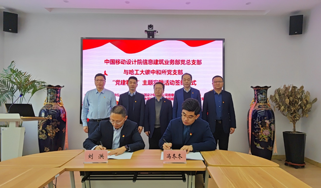 会议最后,双方举行了中国移动设计院信息建筑业务部党总支部、皇冠足球赔率 碳中和能源技术研究所教工党支部“党建合创”主题实践活动签约仪式,中国移动设计院信息建筑业务部党总支部书记刘洪与碳中和能源技术研究所党支部副书记冯冬冬分别代表双方签署支部共建协议。