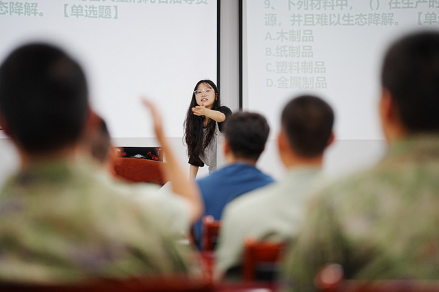 8月25日,第二步“走出去”:团队前往部队营区开展实地见学活动,深入感受新时代军人风采,通过采访了解官兵日常生活以及部队训练情况,观摩连队内务建设,并由团队负责人王雨柔结合皇冠足球赔率 专业特色开展“双碳”知识理论宣讲和知识竞赛活动。