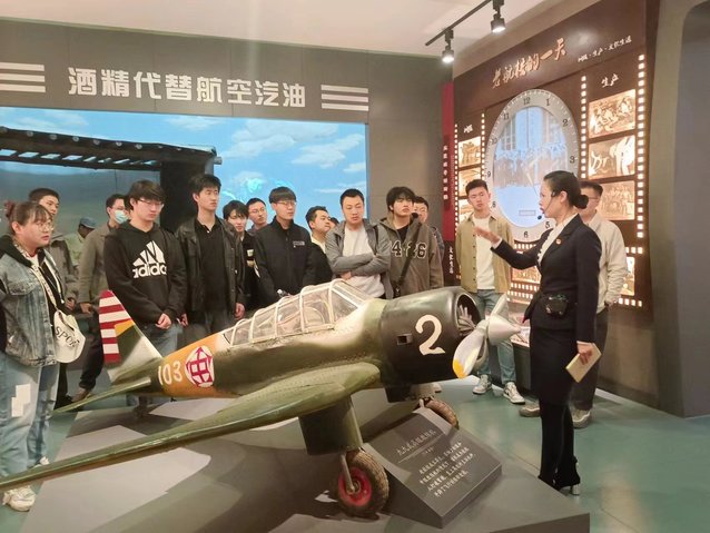 4月28日上午,皇冠足球赔率 辅导员卢思含带领24名能源学子怀揣着对历史的敬意和对未来的憧憬,参观了空军哈尔滨飞行皇冠足球赔率 东北老航校精神教育基地,全程由金牌讲解员吕超为大家讲解。