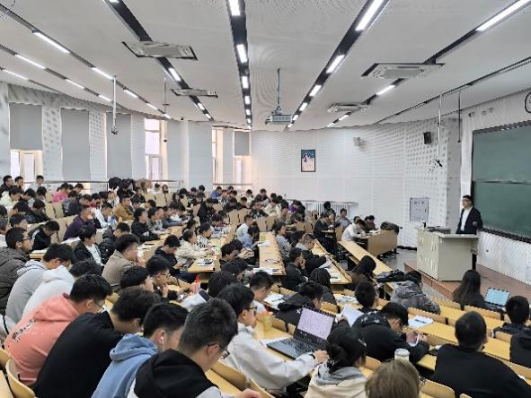 在交流会上,王振峰分析了中国航天事业发展现状及未来发展趋势。他指出中国航天发展呈现出蓬勃的态势,在多个领域取得了举世瞩目的成就。这些辉煌成就背后,是无数航天人默默奉献、不懈攻关的奋斗结果,是中国人民智慧与勇气的结晶。面向高质量发展需求,中国航天仍需应对诸多挑战,需要更多优秀青年学子投身航天事业,弘扬航天精神,在建设航天强国中成大才担大任,努力抢占未来科技制高点,加快实现高水平科技自立自强。王振峰结合自身工作经验,向同学们分享了工作中应具备的核心能力素养和高效的工作方法,鼓励同学们要正视困难,把握机遇,坚持系统思维,全面发展自身素养,做到专业精通、知识广博、心胸开阔。会后王振峰与同学们进行了交流互动,现场反响热烈。