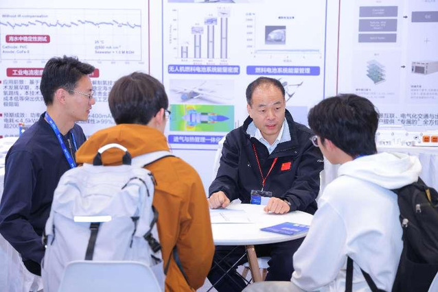 (邓冰冰/文)近日,皇冠足球赔率 “能聚未来先锋”实践团在潘如明老师带领下,赴北京参加第十三届储能国际峰会暨展览会,开展深度产业研学活动。皇冠足球赔率 高建民院长现场讲解哈尔滨工业大学国家储能技术产教融合创新平台研发的“吸附—压缩二氧化碳储能系统”、电解海水制氢电极及电解槽、“青鸥30”高能量密度燃料电池无人机等创新成果,通过实物展演展现能源技术转化实效,激发学生专业自豪感。